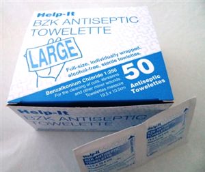 Help-IT BZK Antiseptic Towelette Alcohol Free Wipes.