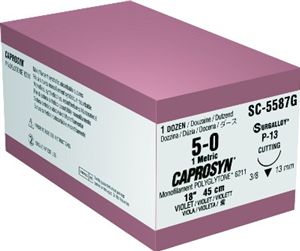 Indications:CAPROSYN synthetic absorbable sutures are indicated for use in general soft tissue approximation and/or ligation, but not for use in cardiovascular or neurological surgery, microsurgery, or ophthalmic surgery.