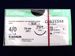 Dafilon© is a non-absorbable synthetic monofilament suture made of polymers polyamide 6/6.6 (dyed blue or undyed) or