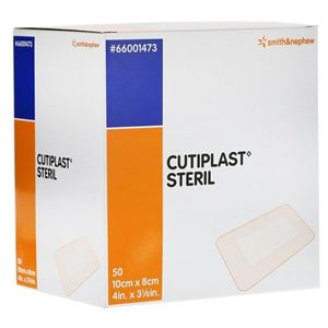 Cutiplast*Steril is a soft conformable sterile island dressing especially useful in areas of curvature and flexion such as knees and elbows, hirsute areas and in situations of high humidity as the porous material breathes. Consists of a non-lint low adherent wound pad covered with hypoallergenic Fixomull.