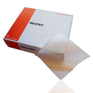 Tricotex dressings are constructed from knitted viscose rayon and are designed to act as an interface between ulcerating or granulating wounds and conventional absorptive dressings. The open knitted construction allows exudate to pass freely from the wound site. Disruption of the wound and its healing tissue is avoided by leaving Tricotex in place while the absorbent pads are changed as required. Being non-medicated, Tricotex dressings are unlikely to elicit any tissue reaction so are ideal for use on their own but can be used in conjunction with a medicament of choice. Tricotex dressings can be removed from the wound at any stage by gently stretching diagonal corners and lifting upwards from the edges.