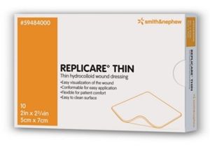 INDICATIONS: REPLICARE Thin is indicated for exudate absorption and the management of partial to full thickness wounds. Some typical wounds are: Ulcers (venous, arterial, diabetic) Pressure Sores Donor Sites Surgical Incisions Surgical Excisions Burns (1st and 2nd degree) Creation and maintenance of a moist wound environment. Moist wound environments have been established as optimal environments for the management of the wound. Provides physical separation between the wound and external environments to assist in preventing bacterial contamination of the wound. Precautions REPLICARE Thin is not indicated for use on third degree burns.