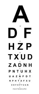Standard three metre Snellen notation for acuity test used by optometrists, ophthalmologists,