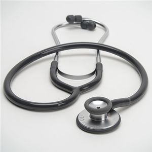Latex-free. Combined double chest piece with two different frequency ranges: A high-quality membrane on one side and a conical acoustic head on the other side. High-quality membrane, 44mm diameter for excellent acoustic performance. Stethoscope with solid flat chest piece. The chest piece can be easily inserted under the sphygmomanometer cuff. Ideal weight avoid stray noise from manipulation and ensure excellent resonance. Hygienic matt chrome finish. Chest piece with non-chill rims for the comfort of the patients. Ergonomic, chrome-plated binaurals. Individually adjustable. High-quality Y-piece tubing for perfect acoustics and sound reproduction. Length 56 cm. Single-tube construction with excellent sound transmission. Includes ear olives (large/soft) for sound insulation. Cone diameter 30mm.
